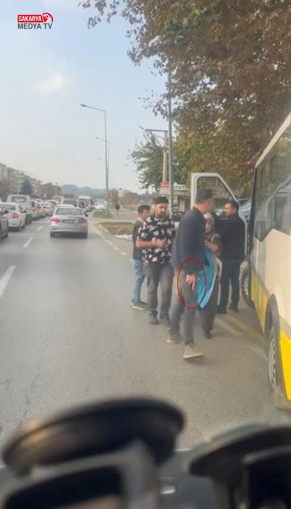 Yolcu indirmek için gelen belediye otobüsü ise Şuayip A.’nı aracını çekmesi için ikazda bulununca taraflar ortasında kelamlı tartışma çıktı.
