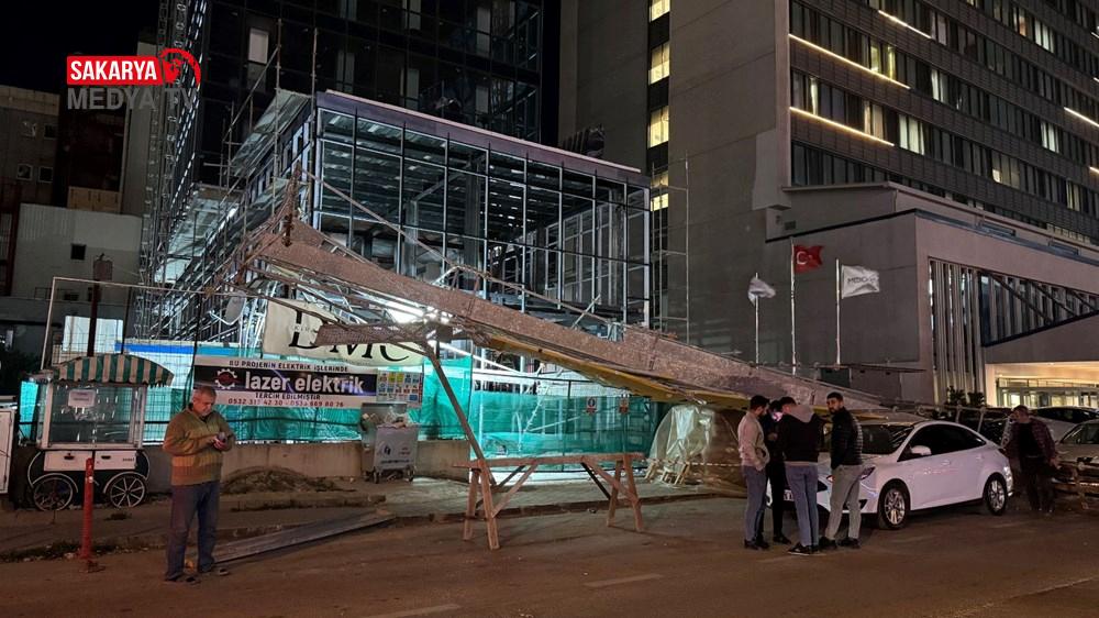 Devrilen iskelenin altında kalan park halindeki araba ziyan gördü.