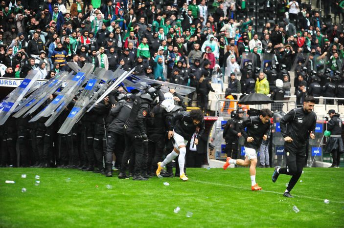 Bursa Büyükşehir Belediye Stadyumu’nda dün oynanan Bursaspor-Amed Sportif Faaliyetleri maçı tam bir kaosa sahne oldu. Sahada çıkan olaylar ve tribünlerde açılan pankartlar tepkilere neden oldu. Maç devam ederken açıklama yapan İçişleri Bakanı Süleyman Soylu, tribünlerde açılan bazı pankartlarla ilgili soruşturma başlatıldığını bildirerek, “Futbol seyrinin dışındaki görseller, kabul edilemez ve sporla bağdaştırılamaz.