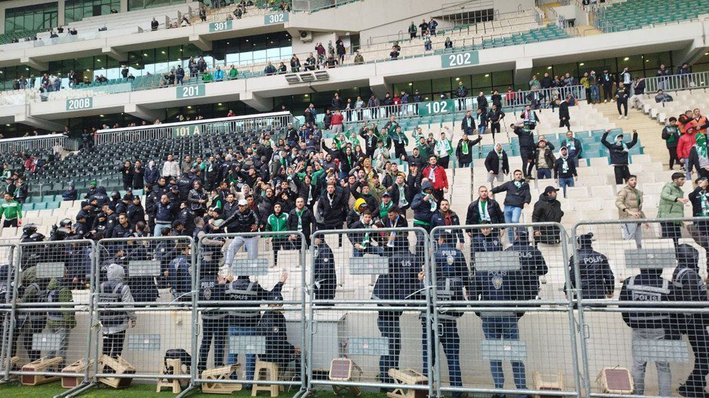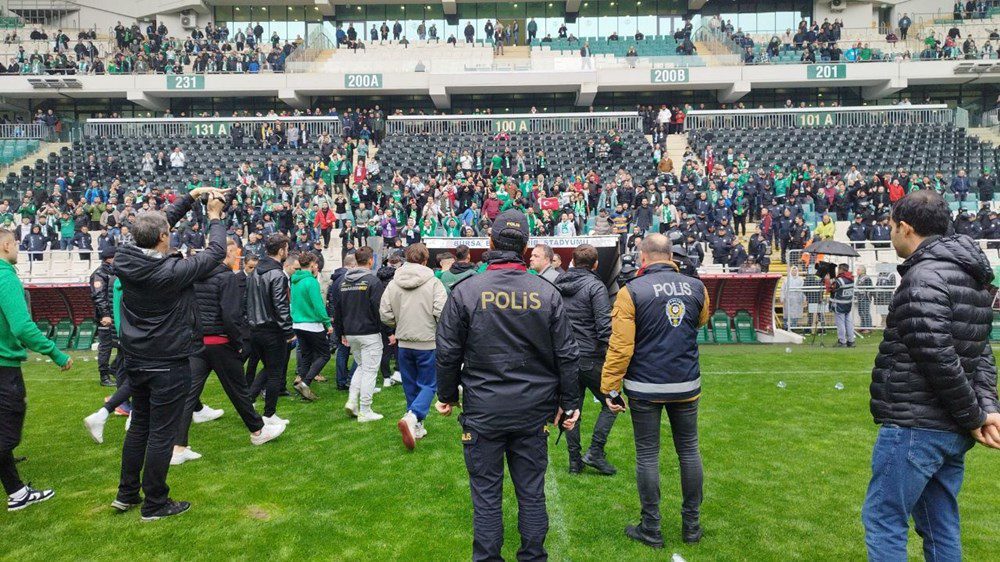 Bunun üzerine Bursasporlu futbolcular da sahaya çıktı.