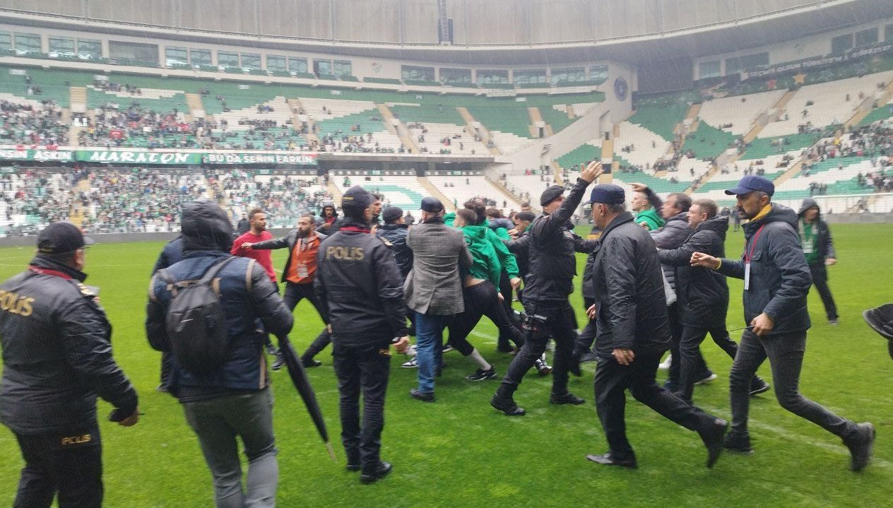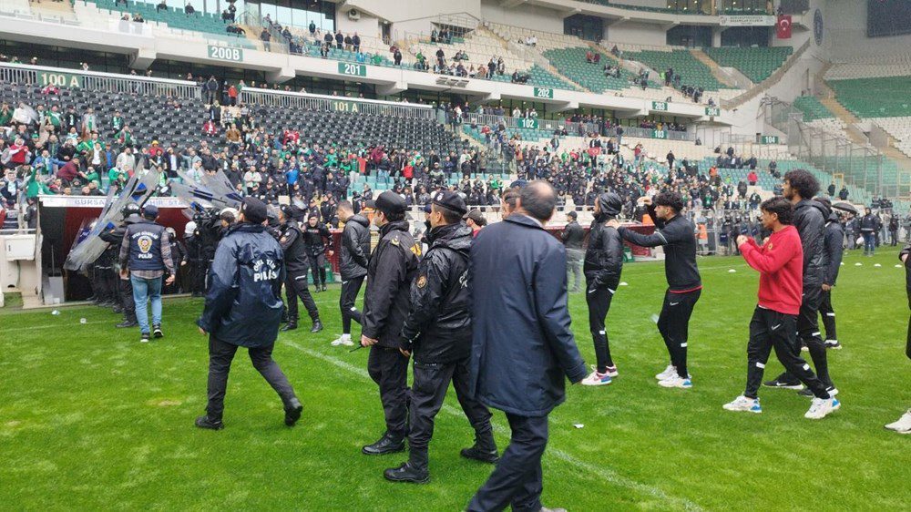 Polisin müdahalesiyle saha içerisindeki arbede sonlandırılırken, her iki takımın oyuncuları soyunma odasına geri döndü.