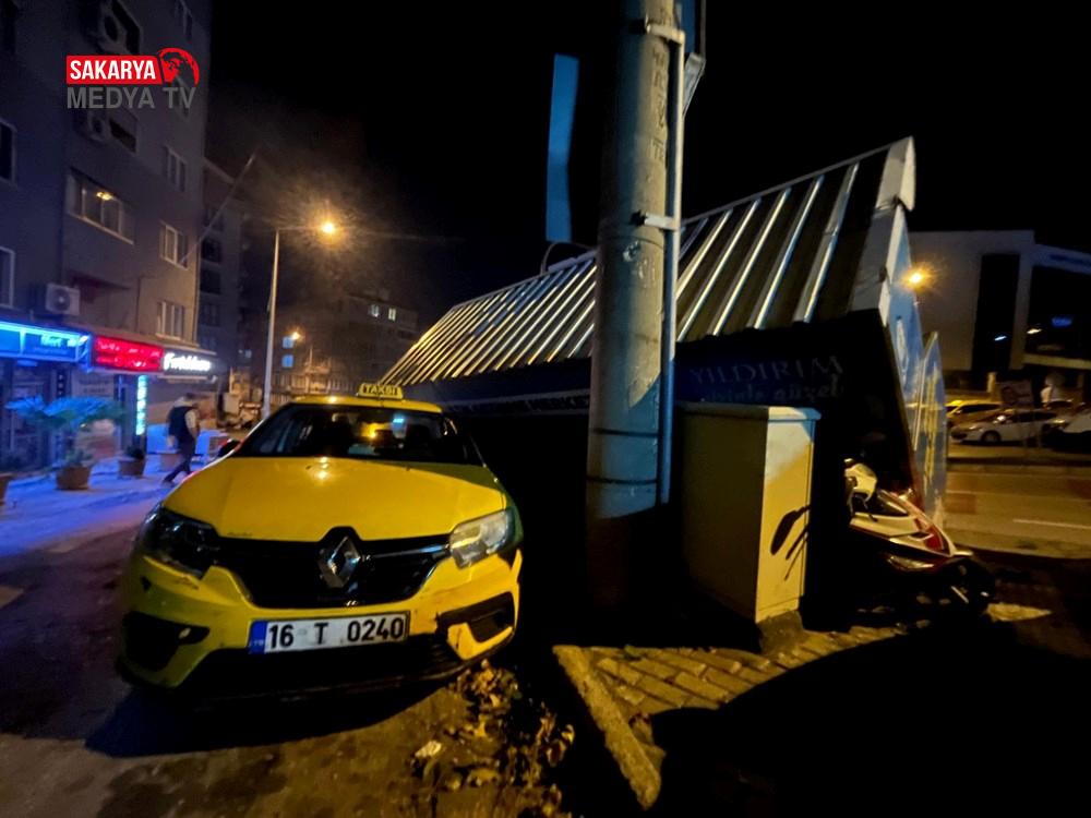 Namazgah Mahallesi’ndeki atık toplama kabini de taksinin üzerine devrildi.