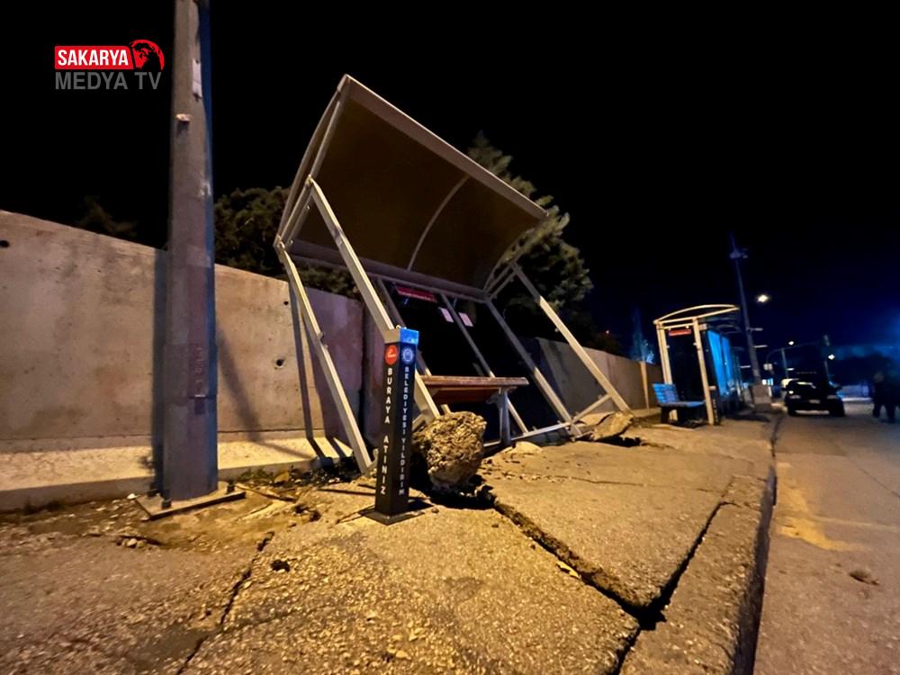 Yıldırım ilçesi Mimar Sinan Caddesi’ndeki bir belediye otobüsü durağı kuvvetli fırtına yüzünden yan yattı.