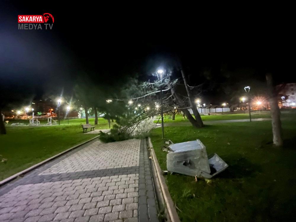Bazı çöp konteynerlerinin devrildiği fırtına reklam panoları ve tabelalara da hasar verdi.