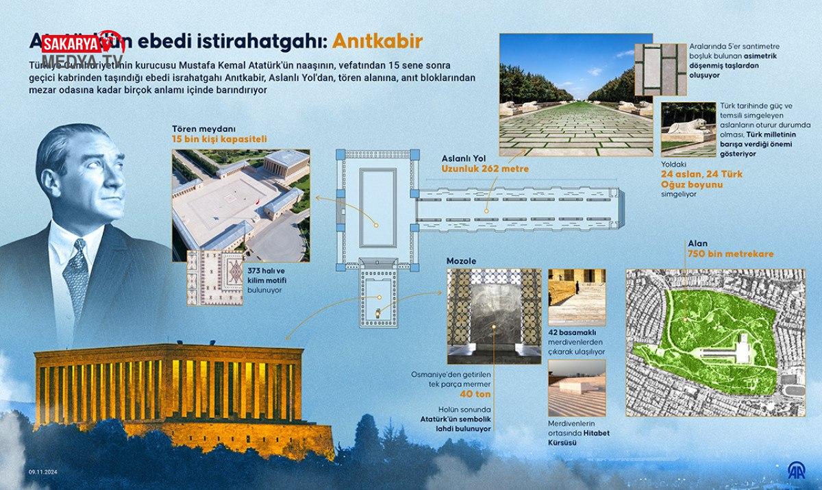20 Kasım’da Ankara’da devlet erkanı tarafından karşılanan cenaze, TBMM önünde katafalka konuldu. 21 Kasım 1938’de çok büyük bir cenaze merasimi ile Ankara Etnografya Müzesi’ndeki süreksiz kabrine konulan Atatürk’ün naaşı, ebedi istirahatgahı Anıtkabir’e taşındığı 10 Kasım 1953’e kadar burada kaldı. “Benim naçiz bedenim elbette bir gün toprak olacaktır, ancak Türkiye Cumhuriyeti ebediyen payidar kalacaktır” diyen Atatürk, ebedi istirahatgahı olan Türkiye’nin kalbi Anıtkabir’de Türk milletinin gönlünde yaşamaya devam ediyor. Kaynak: Anadolu Ajansı (AA)
