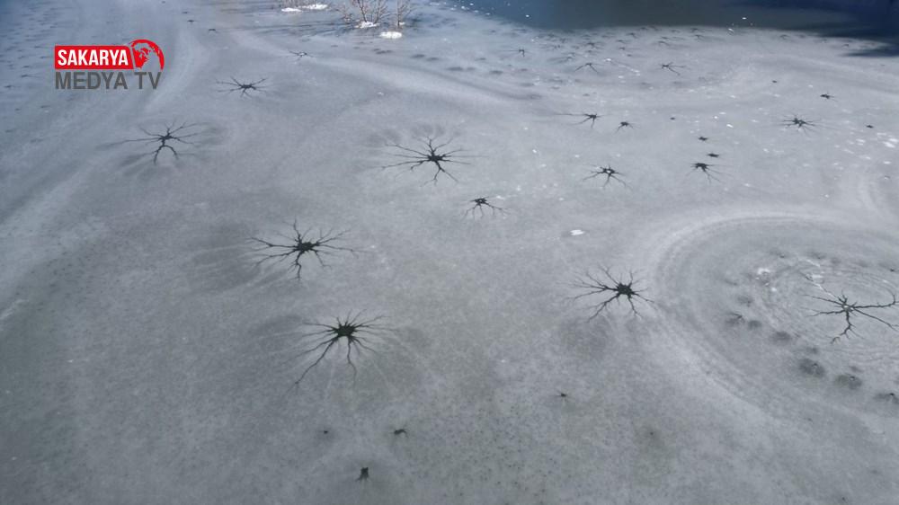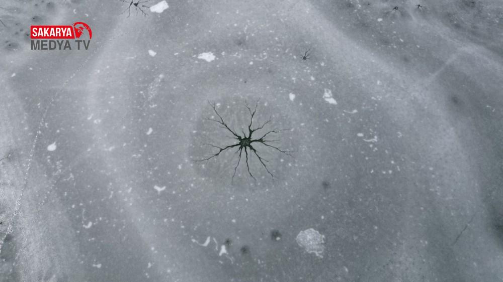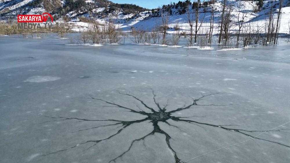 Özellikle eski köy yerleşim yerinin bulunduğu alana yakın noktada gölün buz tutan kısımlarında çatlaklar oluştu.