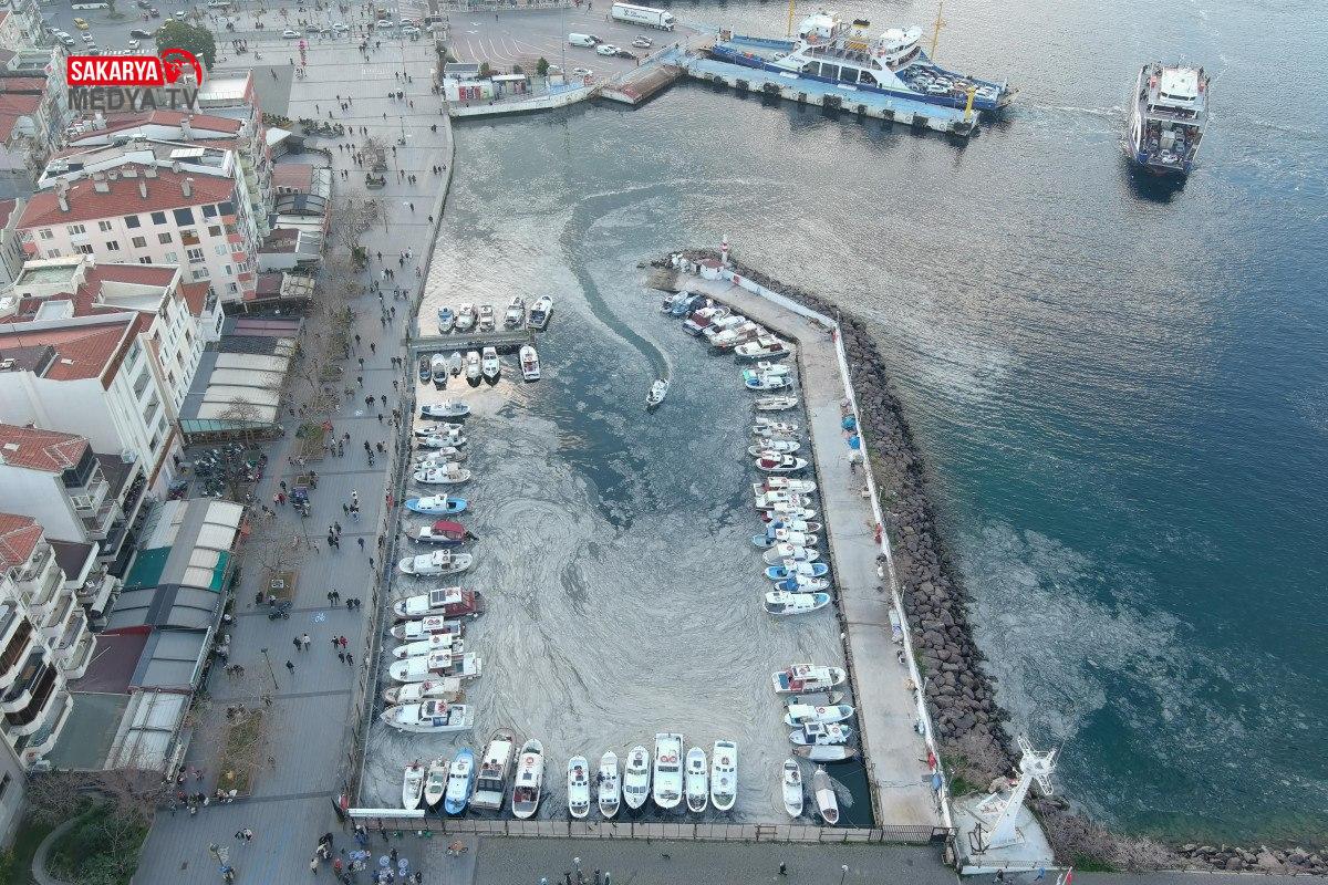 Yat limanı ve balıkçı teknelerinin yanaştığı bölge büsbütün müsilaj ile kaplanırken, bu anlar fotoğraf sanatkarı Cihan Kurnaz tarafından dron ile görüntülendi.