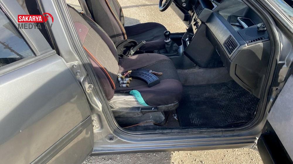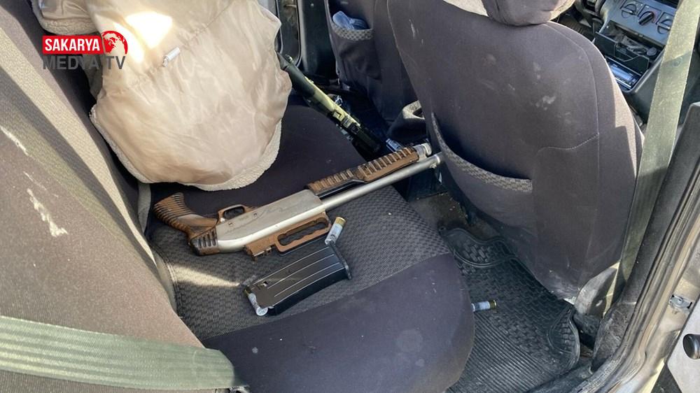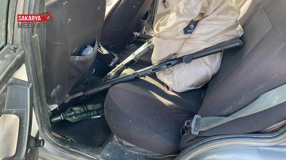 Otomobilde yapılan aramada iki pompalı tüfek ele geçirildi.