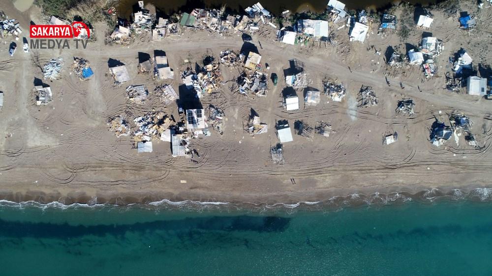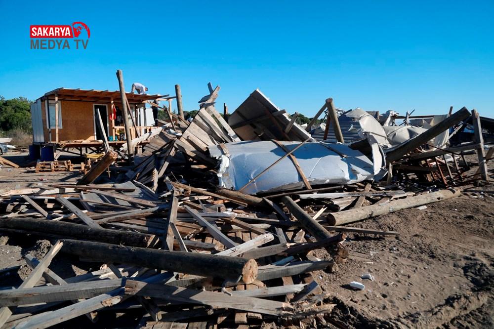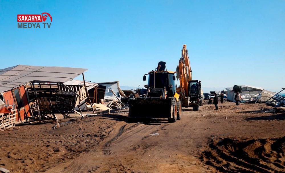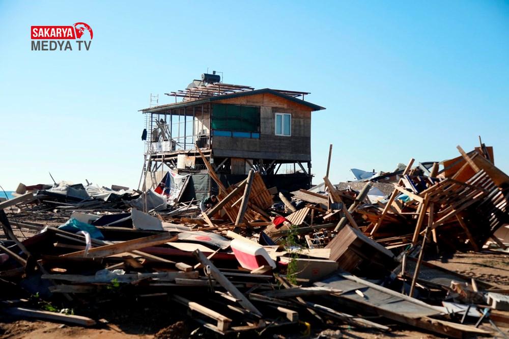 Polis ekipleri de sahile vatandaşların girişini engelleyerek yıkımın tamamlanmasını bekledi. Kış mevsimi olmasına rağmen çardaklarında yaşamaya devam eden 3 kişi ise yıkıma direndi.