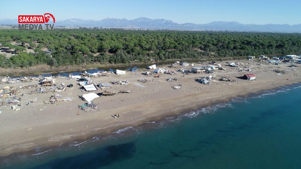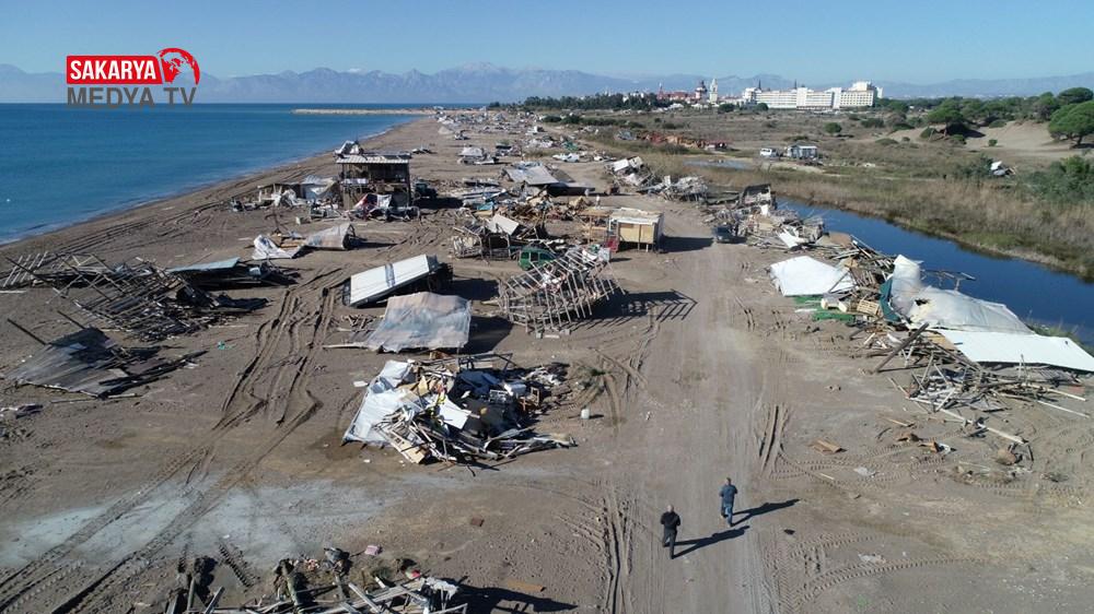 20 Kasım günü 3 çardağın yıkımının ardından Aksu Belediyesi yetkilileri, çardakları bulunan vatandaşlara değerli eşyalarını almaları için süre verdiklerini belirterek yıkımı erteledi. 7 günün sonunda bugün yıkım için tekrar alana gelen belediye ekipleri, sabaha karşı sahilin giriş ve çıkışlarını kamyonla kapattıktan sonra iş makineleriyle yıkıma başladı.