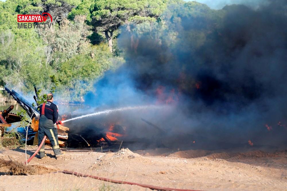 Polis ekiplerinin müdahale edeceğini gören bazı çardak sahipleri, tahta çardaklarını ateşe verdi.