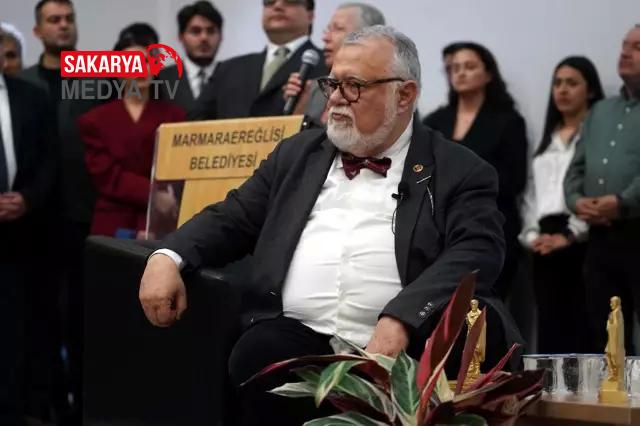 Konferansın ardından Marmaraereğlisi Belediye Başkanı Mustafa Onur Bozkurter tarafından Prof. Dr. Celal Şengör’e ikram takdim edildi.