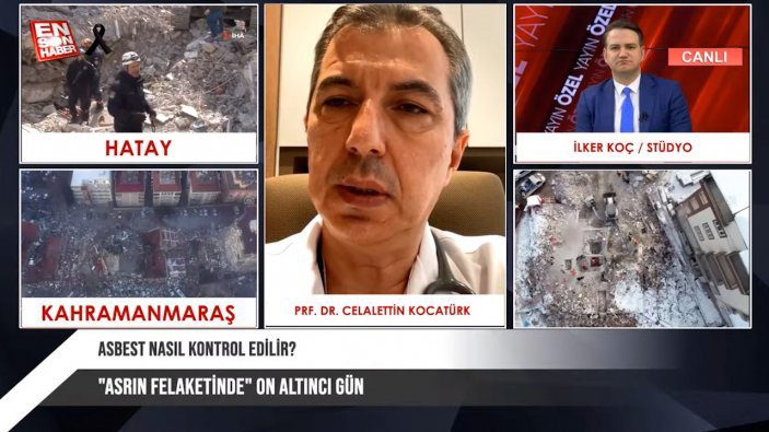 Ensonhaber canlı yayınına katılan Göğüs Cerrahisi Uzmanı Profesör Celalettin Kocatürk, asbest tehlikesinin yol açabileceği hastalıkları ve alınması gereken önlemleri sıraladı.