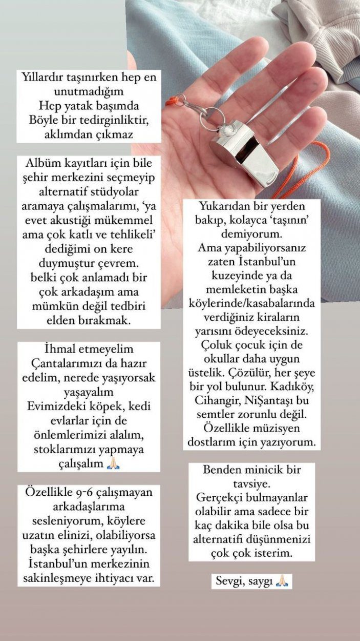 “Ceylan Ertem’in köy hayatı diye haberler çıkmıştı. Neden şehrin ortasında yaşamıyorum? En önemli sebeplerinden biri aslında 24 yıl geçmesine rağmen bu tedirginliğin geçmemesi. İstanbul’da çok acil; yapı denetimleri hızlanmalı ve önlemler arttırılmalı!”