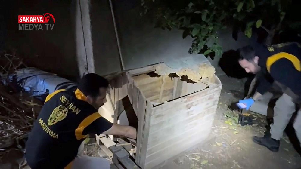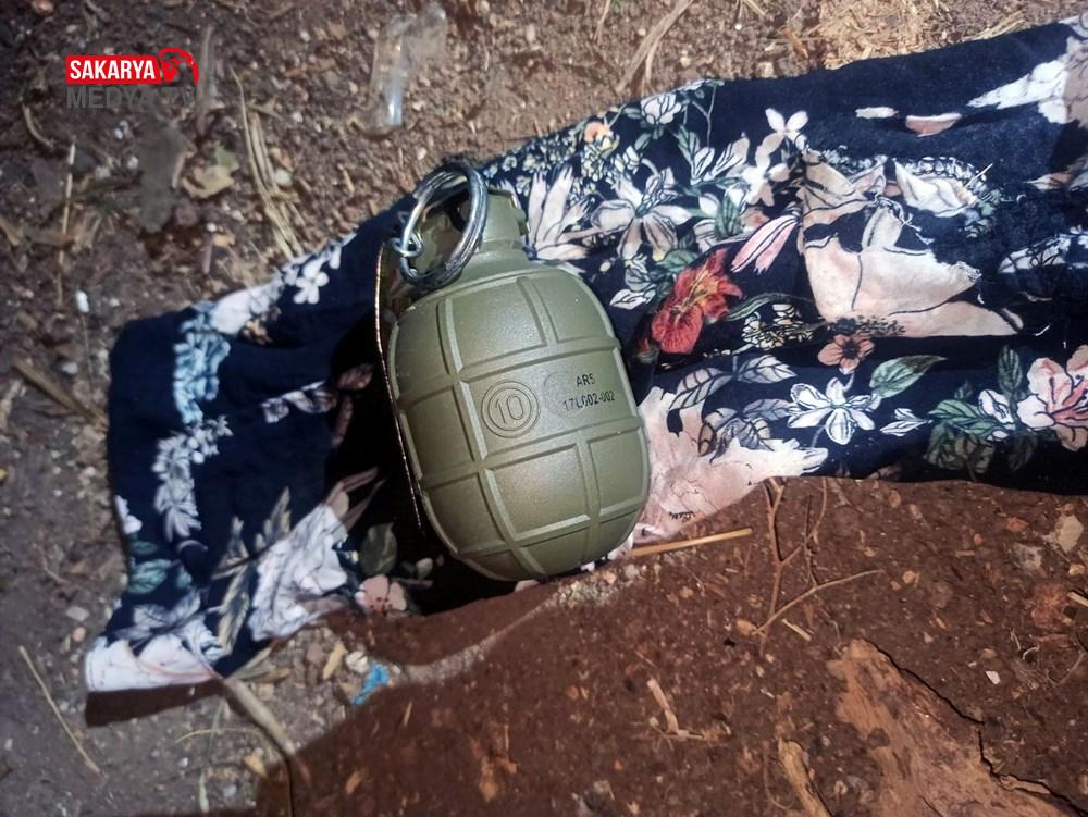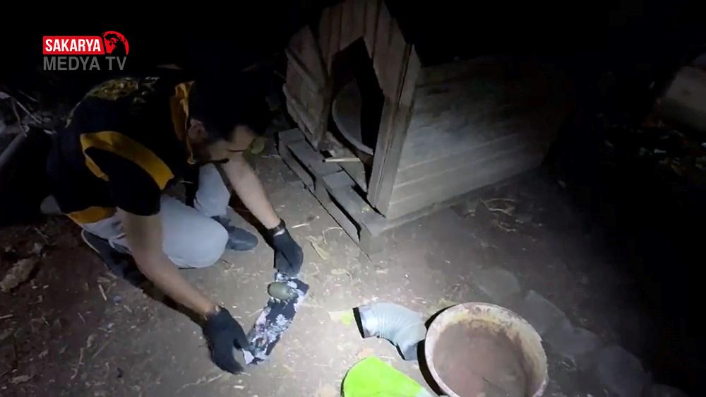 Bahçede aramayı sürdüren polis, köpek kulübesinin içindeki leğene gizlenmiş el bombası buldu.