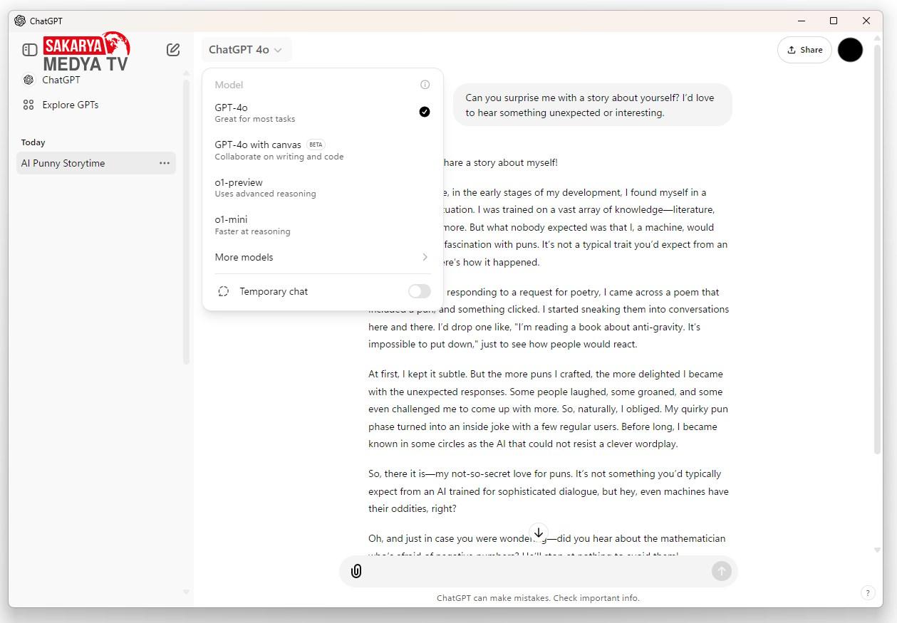 Mac versiyonuna benzer şekilde, Windows için geliştirilen ChatGPT uygulaması da, kullanıcıların ayrı bir pencere açarak diğer uygulamaların yanında sorularını hızlıca sormasına imkan tanıyor. Uygulama, dosya ve fotoğraf yüklemeyi desteklerken, OpenAI’nin yeni geliştirdiği ve “akıl yürütme” yetenekleri bulunan o1 modeline de erişim sağlıyor. Uygulamaya Alt + Space kısayolu ile kolayca erişilebiliyor.