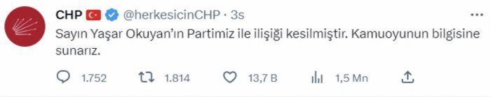 ‘Yaşar Okuyan’ın partimizle ilişkisi kesilmiştir’ diye. Yani bu enteresan bir şey. Bir parti üyesinin ilişkisi kesildi diye bir partinin genel merkez açıklama yapma hakkına sahip değildir. Neden partinin tüzüğü vardır.