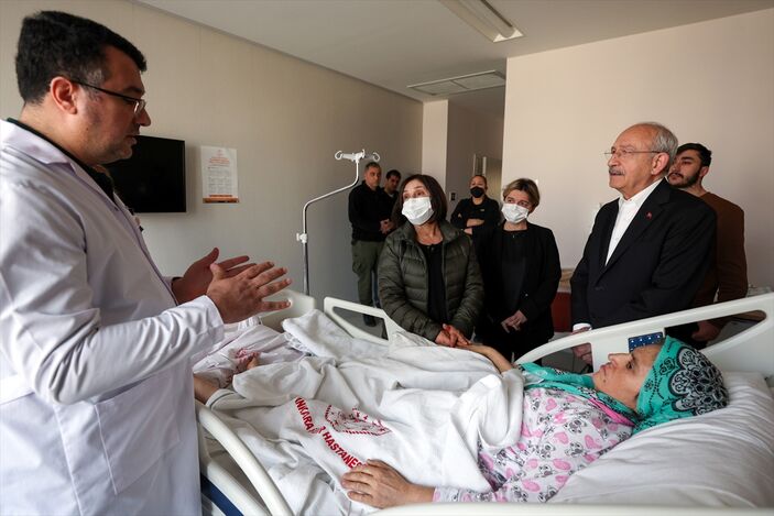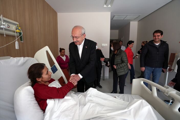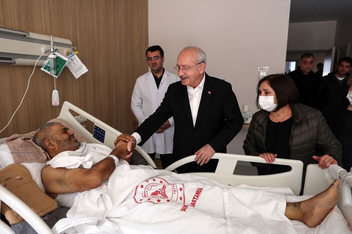 CHP’den yapılan açıklamada, Kılıçdaroğlu’nun, eşi Selvi Kılıçdaroğlu ve CHP Genel Sekreteri Selin Sayek Böke ile deprem bölgelerinden Ankara Bilkent Şehir Hastanesine getirilen yaralı depremzedeleri ziyaret ederek “geçmiş olsun” dileklerini ilettiği belirtildi.