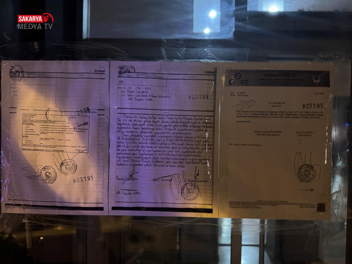 Açıklamanın akabinde grev kararı belediyenin kapısına asıldı.