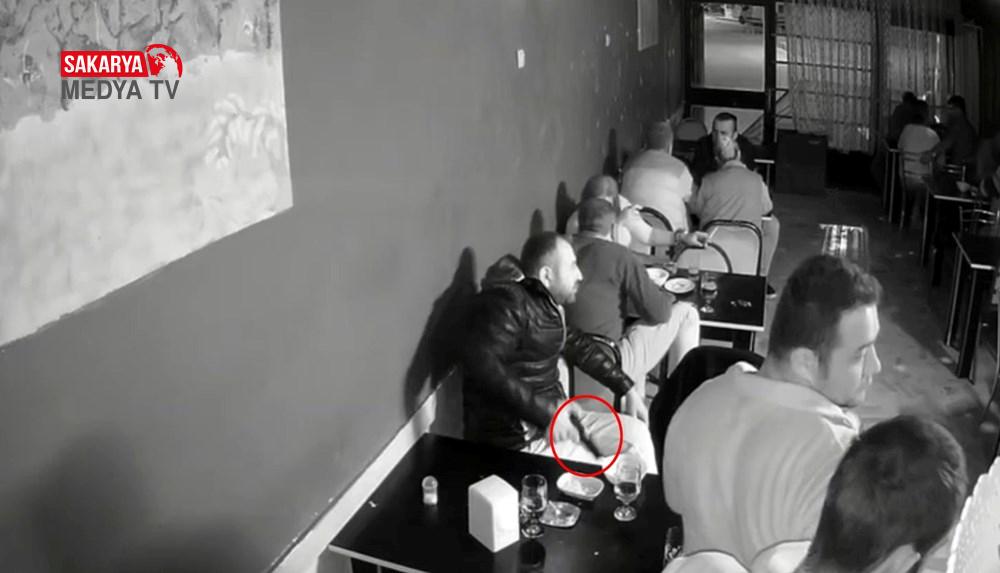 Görüntülerde Hüseyin Mete’nin masada bir kadınla sohbet ettiği sırada arka tarafında oturan Ramazan Uçar’ın üzerinde bulundurduğu tabancayı çıkarıp vurduğu yer aldı.