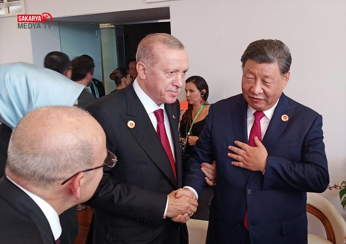 Erdoğan daha sonra, Çin Devlet Başkanı Xi Jinping ile görüşmesinde ise Çin başkanıyla samimi pozlar verdi.