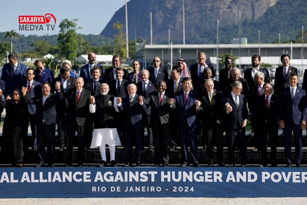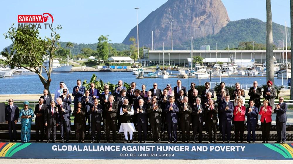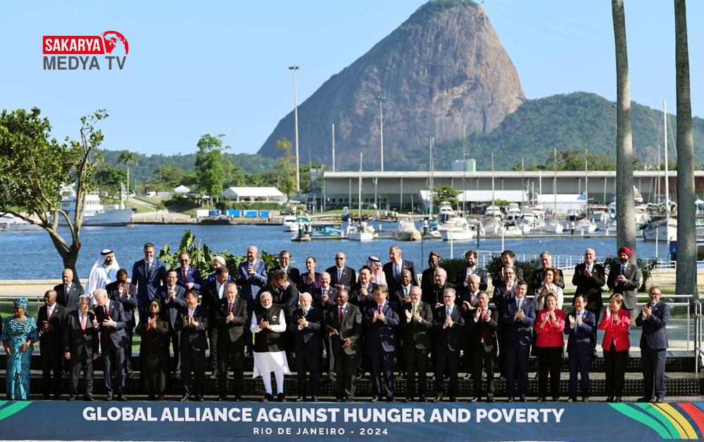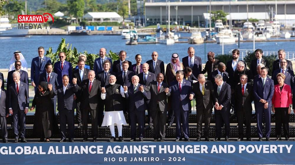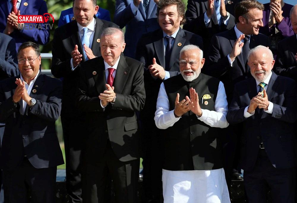 Cumhurbaşkanı Recep Tayyip Erdoğan G20 Zirvesi için Brezilya’da. Liderler, Rio da Janeiro kentinin ev sahipliği yaptığı zirvenin ilk gününde el ele tutuşarak aile fotoğrafı çektirdi. Erdoğan, fotoğraf çekiminde en ön sıradaydı. Amerika Birleşik Devletleri Başkanı Joe Biden ve Kanada Başbakanı Justin Trudeau fotoğraf çekimini kaçırdı.