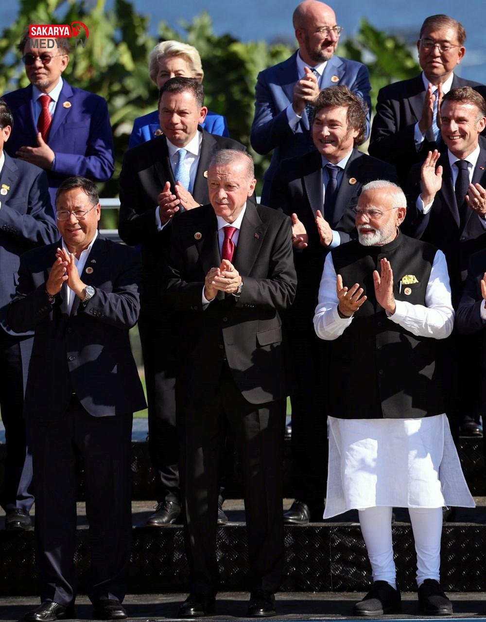 Cumhurbaşkanı Erdoğan, aile fotoğrafı çekilirken, Hindistan Başbakanı Narendra Modi ve Vietnam Başbakanı Pham Minh Chinh ile yan yana durdu. Erdoğan, fotoğraf çekimi sırasında, Mısır Cumhurbaşkanı Abdulfettah es-Sisi, Fransa Cumhurbaşkanı Emmanuel Macron, Hindistan Başbakanı Narendra Modi ve Vietnam Başbakanı Pham Minh Chinh ile sohbet etti.