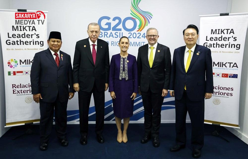 Cumhurbaşkanı Erdoğan, daha sonra zirve kapsamında Meksika, Endonezya, Güney Kore, Türkiye ve Avustralya arasındaki gayriresmi istişare ve eş güdüm platformu MIKTA’nın liderleriyle bir araya geldi.