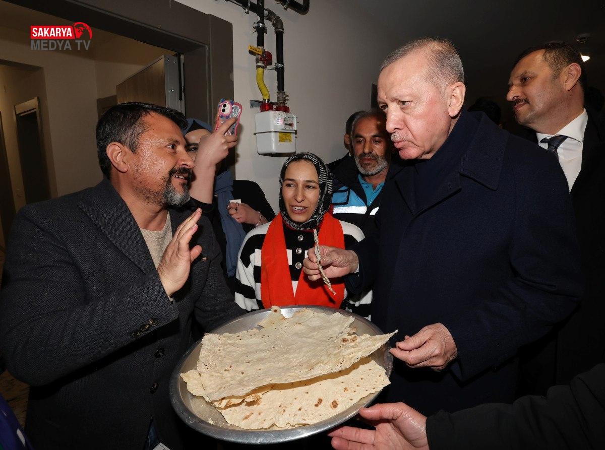 Örenli Mahallesi’nde Baykar tarafından yaptırılan konutları ziyaret eden Cumhurbaşkanı Erdoğan, sarsıntıda konutları yıkıldıktan sonra yeni bir konut yapılan Abdullah Karakuş ve ailesinin konuğu oldu.