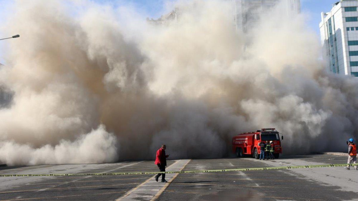 Kayseri’de ağır hasarlı bina yıkılırken ortalık toz bulutu ile kaplandı