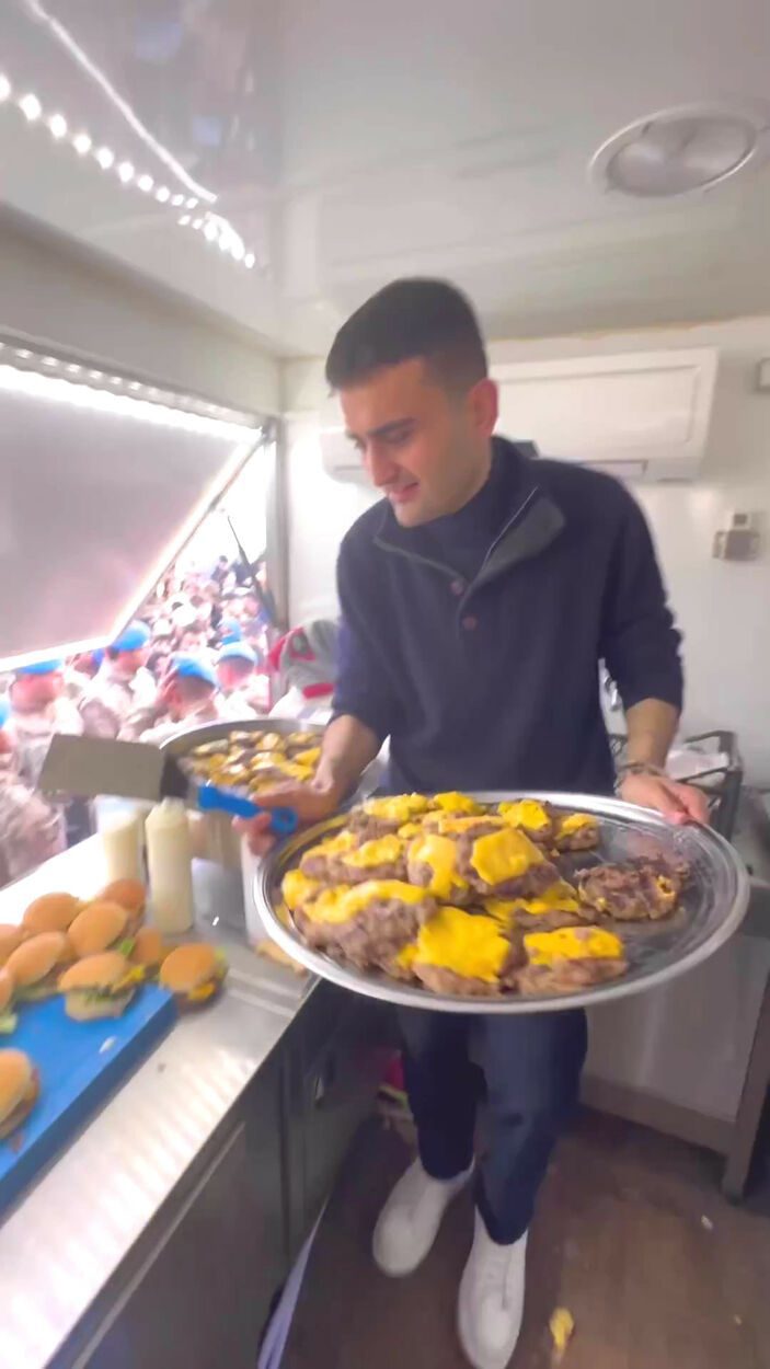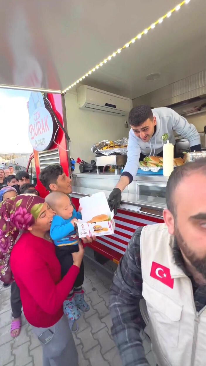 Afetzedelere götürmek için hamburger eti hazırlatan CZN Burak, bununla da yetinmedi, bir karavan tuttu.