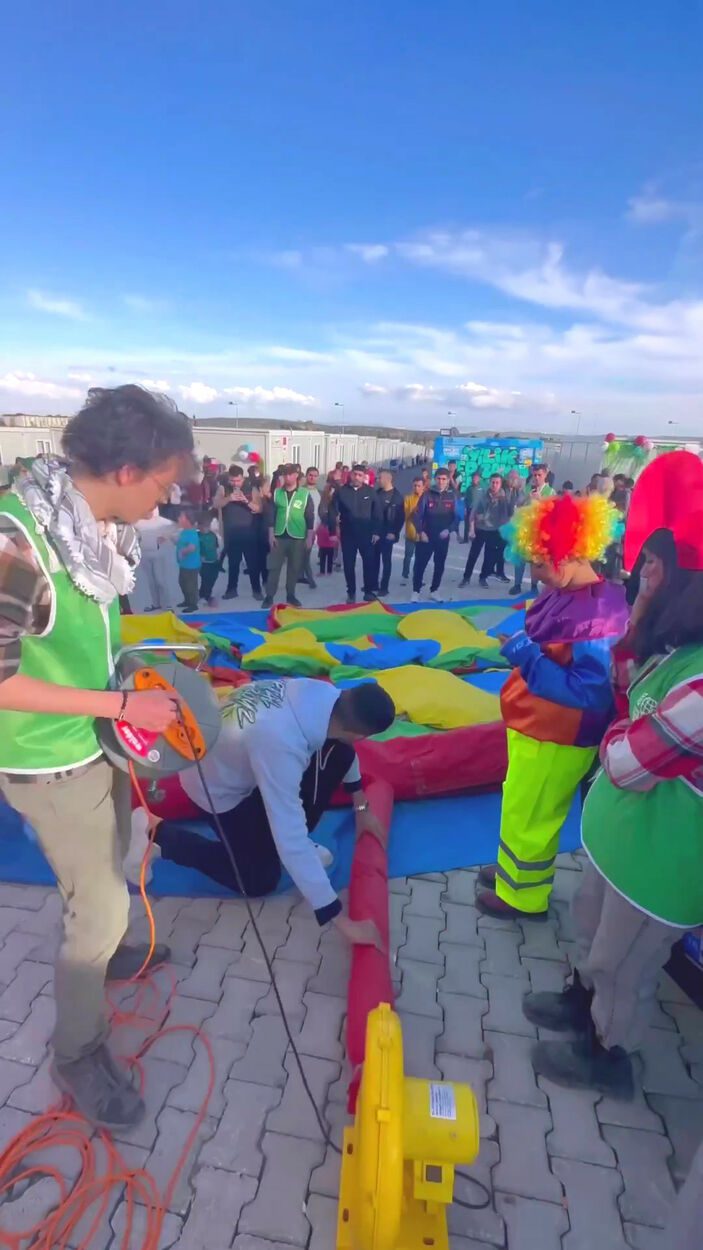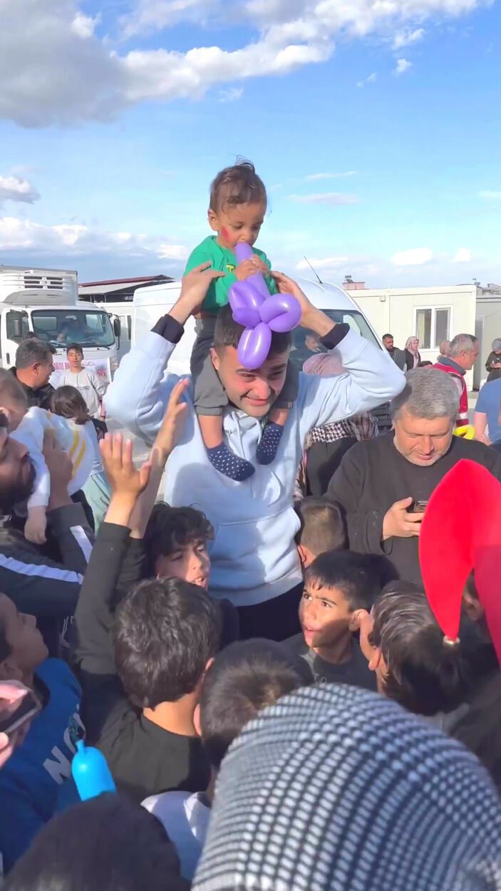 Kısa bir an depremi unutan çocukların mutluluğu kameraya yansıdı.