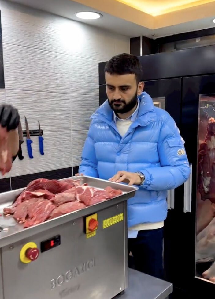 Mücadeleye devam eden CZN Burak, bu kez bir kasapta görüntülendi.