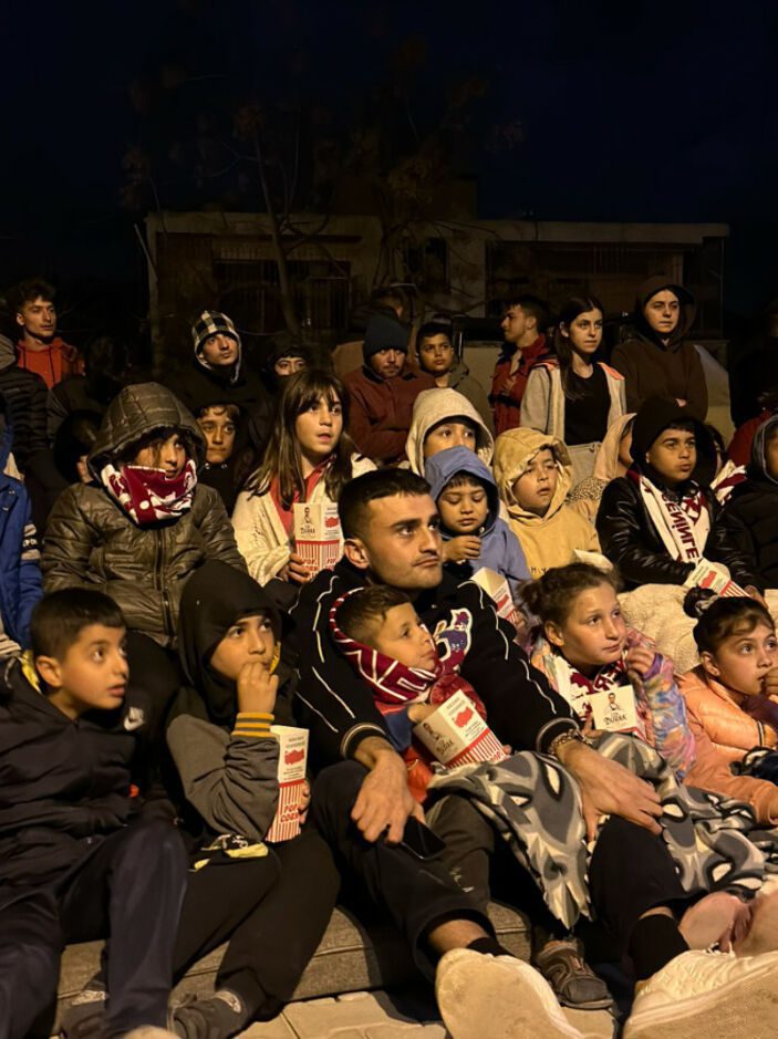 Samandağ ilçesindeki küçük çocuklar için harekete geçen iş adamı, burada açık hava sineması kurdu.