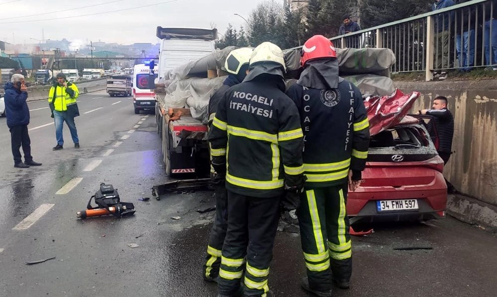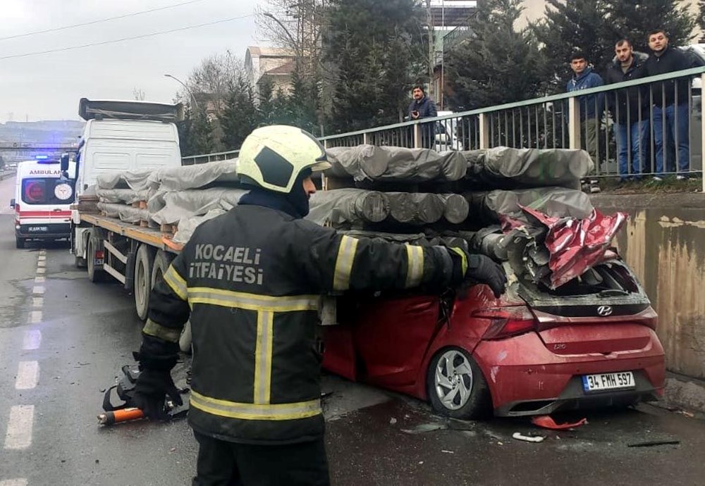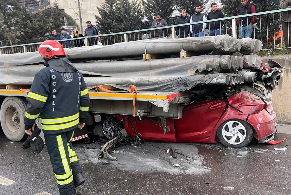 Kocaeli’de emniyet şeridinde duran TIR’a çarpıp yanan arabanın şoförü hayatını yitirdi. Kaza, sabah saatlerinde D-100 Karayolu’nun Dilovası ilçesi geçişinde meydana geldi. İstanbul tarafına giden Samet K. idaresindeki 31 FMH 597 plakalı araba, emniyet şeridinde duran Şaban A. idaresindeki 41 YH 249 plakalı demir yüklü TIR’a arttan çarptı. Samet K., çarpmanın tesiriyle alev alan arabada sıkıştı.