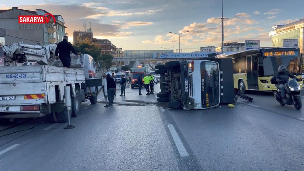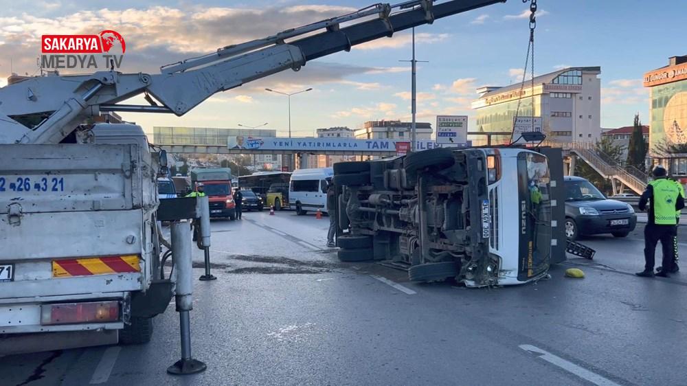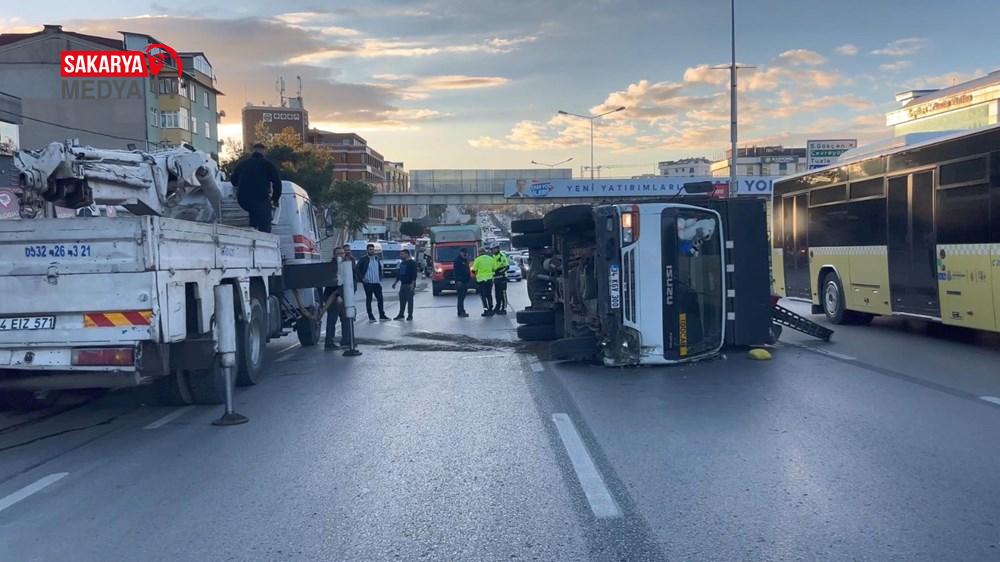 Devrilen kamyonet, olay yerine çağrılan vinç yardımıyla kaldırılırken trafik bir mühlet sonra olağana döndü.