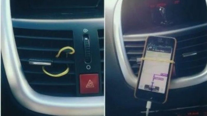 Eğer bir telefon tutacağınız yoksa üzülmeyin! Bir lastik bant kullanarak aynı sonucu elde edebilirsiniz. Konsolun içinden, telefonunuzun üst ve alt kısımlarından geçirin, ardından sabitlemek için havalandırma deliklerinden geçirin.