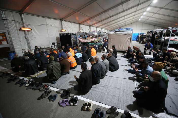 Kandil programına, depremzedelerin yanı sıra çadır kent alanındaki kamu görevlileri de katıldı.