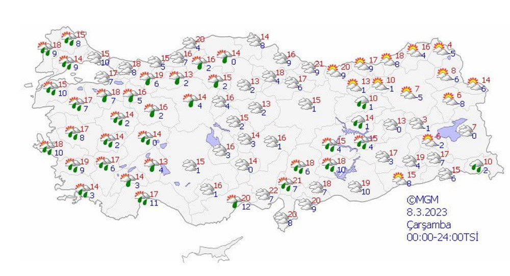 8 MART ÇARŞAMBA HAVA DURUMU