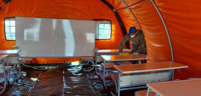 Bu süreçte eğitimin de aksamaması adına Liselere Geçiş Sistemi (LGS) sınavları ile Yükseköğretim Kurumları Sınavı’na (YKS) hazırlanan öğrenciler için de harekete geçildi. Depremin vurduğu Hatay’ın İskenderun ilçesinde 8. ve 12. sınıf öğrencileri, Mehmetçik tarafından kurulan çadırlarda eğitim görmeye başladı. Milli Eğitim Bakanlığınca yürütülen çalışma kapsamında ilçede 13 noktaya askerler tarafından Destekleme ve Yetiştirme Kurslarının verilmesi için çadırlar kuruldu.
