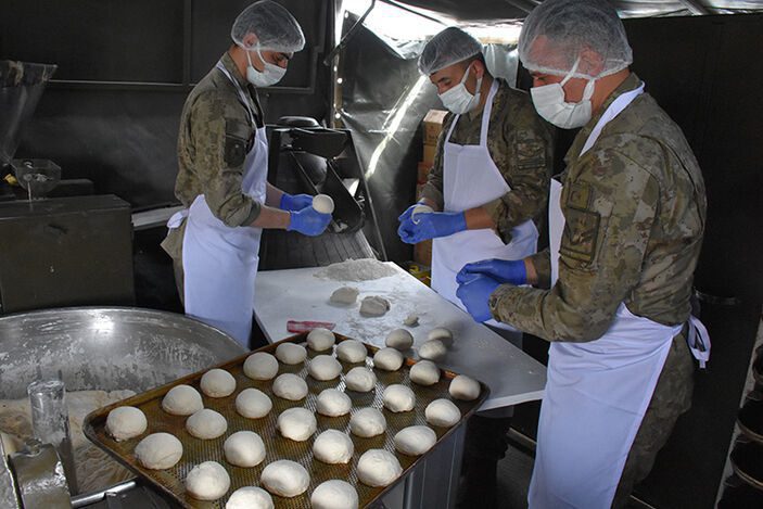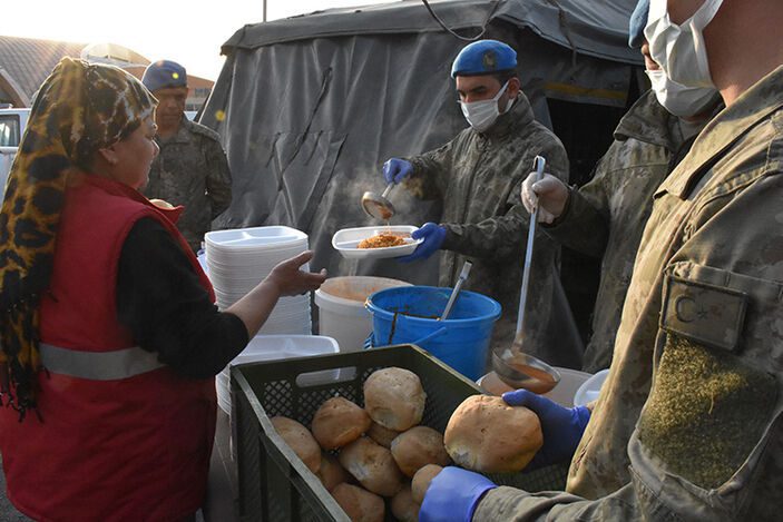 Yaklaşık 250 çadırın bulunduğu alanda depremzedelerin günlük ihtiyaçlarının karşılanması için Malatya 2. Ordu Komutanlığı ile Kırklareli 41. Komando Tugay Komutanlığına bağlı 75 personel görev yapıyor. Depremzedeler için fırında ekmek pişiren, üç öğün yemek hazırlayan askerler, odun keserek yakmaya hazır hale getiriyor. Afetzedeleri tıraş da eden Mehmetçik, lise ve üniversiteye hazırlanan öğrencilere destek veriyor.