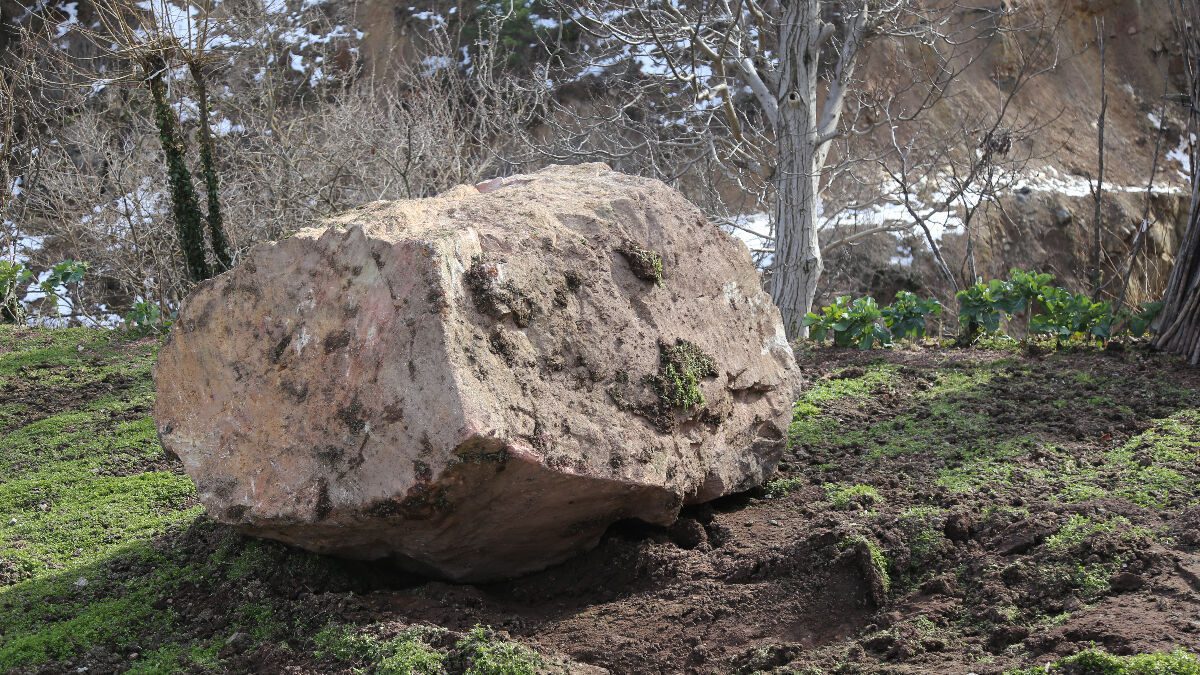 Artvin’de dağdan düşen kaya iki eve şans eseri zarar vermedi