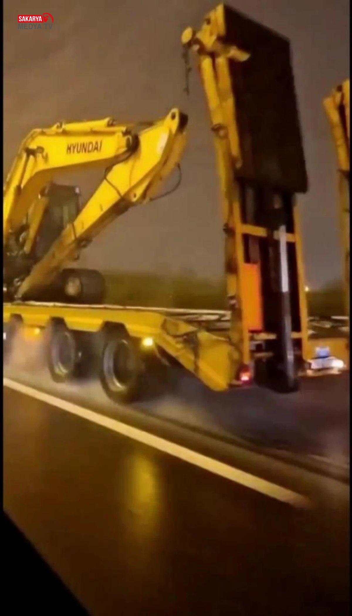 Kahramanmaraş merkezli depremlerin ardından sosyal medyada yayılan videoda, deprem bölgesine iş makinesi taşıyan bir tırın, bölgeye bir an önce ulaşmak için yüksek hızla ilerlediği görülmüştü.