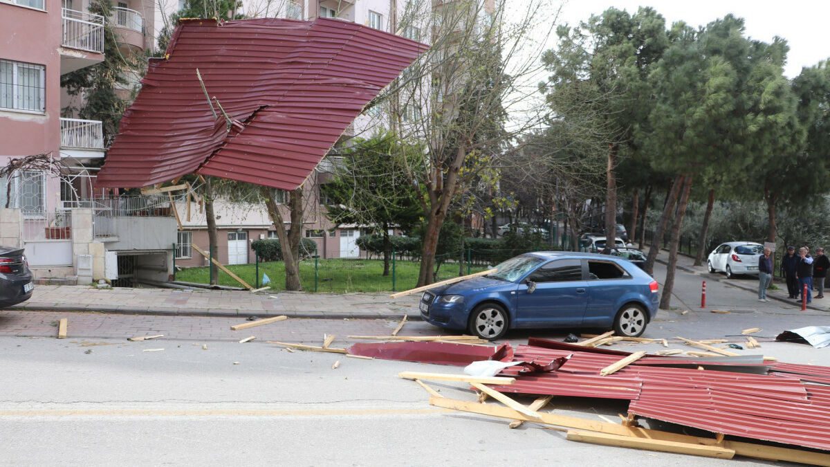 Denizli’de kuvvetli rüzgar çatıları uçurdu: 6 otomobil hasar gördü
