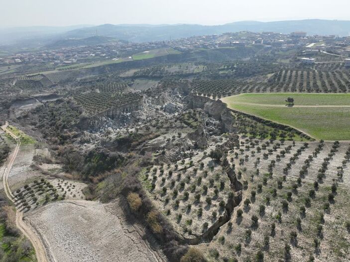Altınözü ilçesine bağlı Tepehan Köyü’nde de 35 dönümlük zeytin bahçesini ortadan ikiye bölen dev bir yarık oluştu. Yaklaşık 30 metre derinliğinde olan 500 metre uzunluğundaki yarık görenleri hayrete düşürdü.