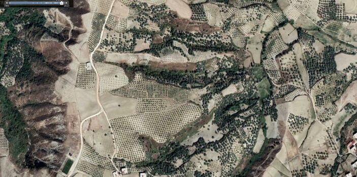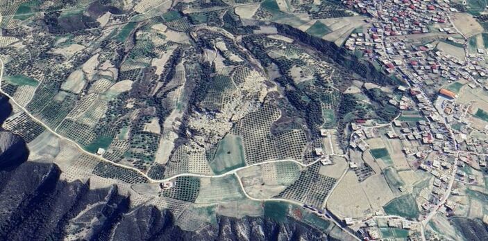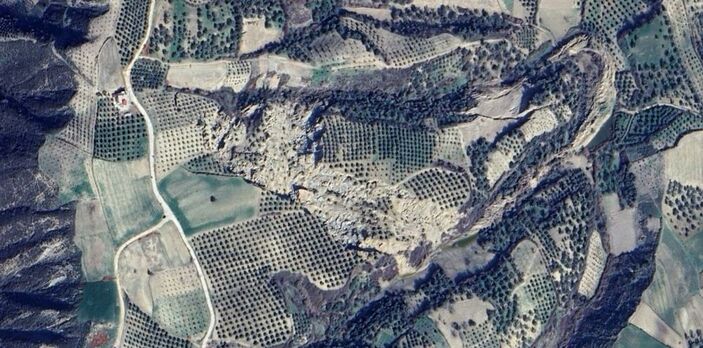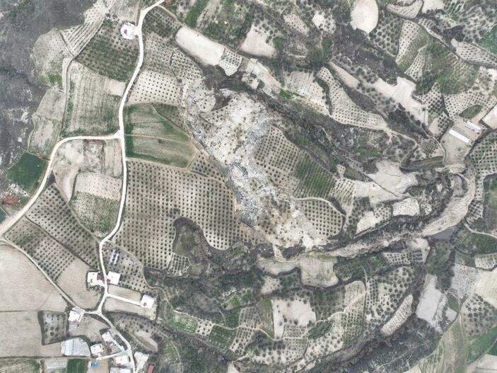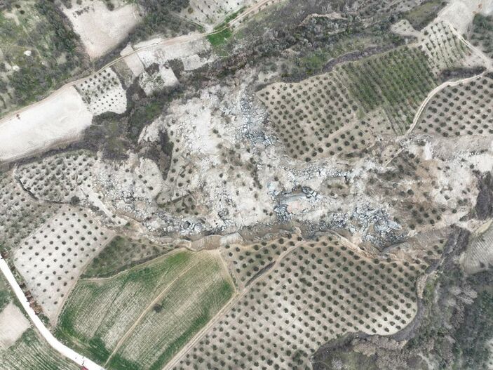 Depremden önce tarlada duran zeytin ağaçları da afet sonrasında oluşan yarığın içine girdi.