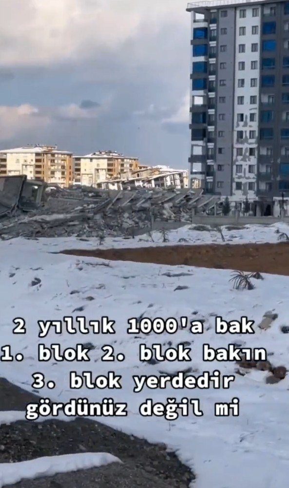 Bir vatandaş tarafından kaydedilen videoda, yıkılan binaların müteahhidi ile ayakta kalan TOKİ binalarının kıyası yapıldı.