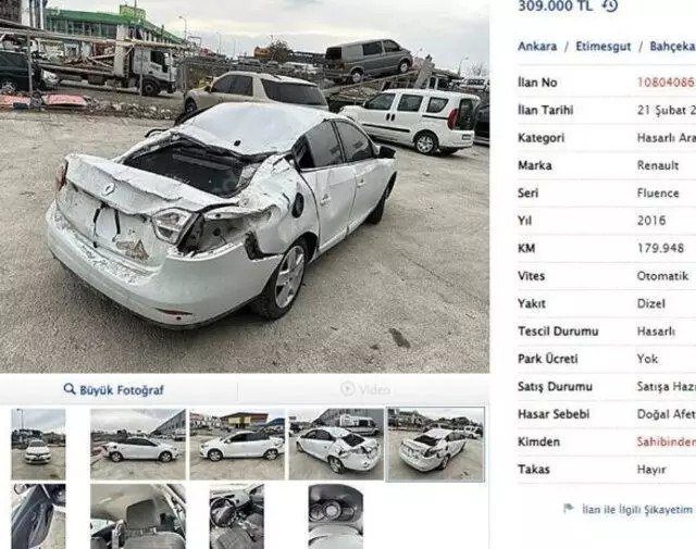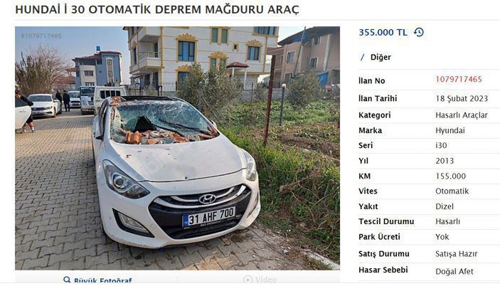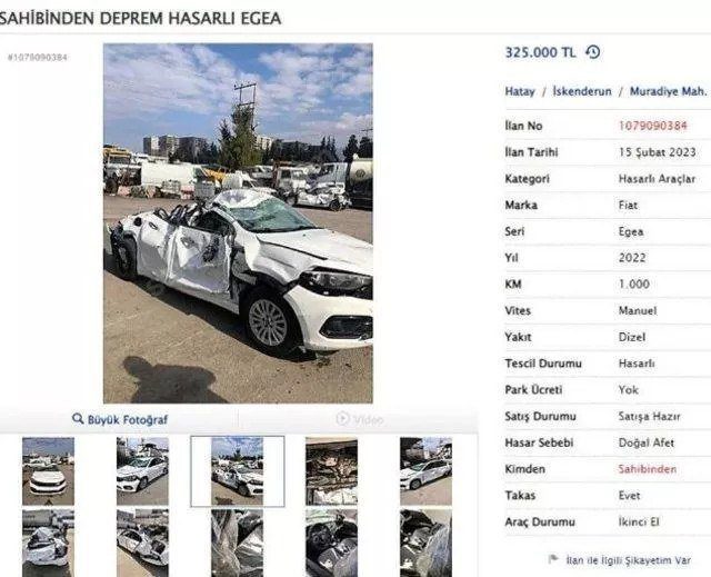 Depremden etkilenen şehirlerden açılan ilanlarda bazı vatandaşlar nakit ihtiyacını karşılamak için araçlarının hasarlı fotoğraflarını çekerek satılığa çıkardı.