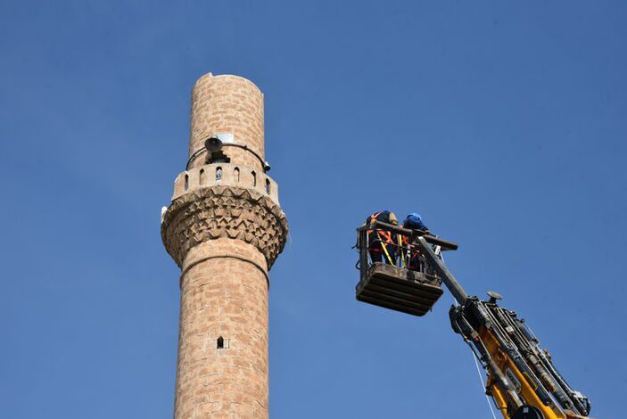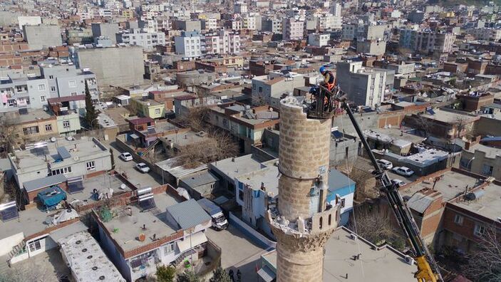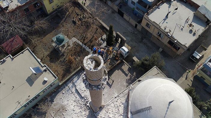 Ekiplerimiz şu an zarar gören minarenin yıkımını gerçekleştiriyor.” dedi.