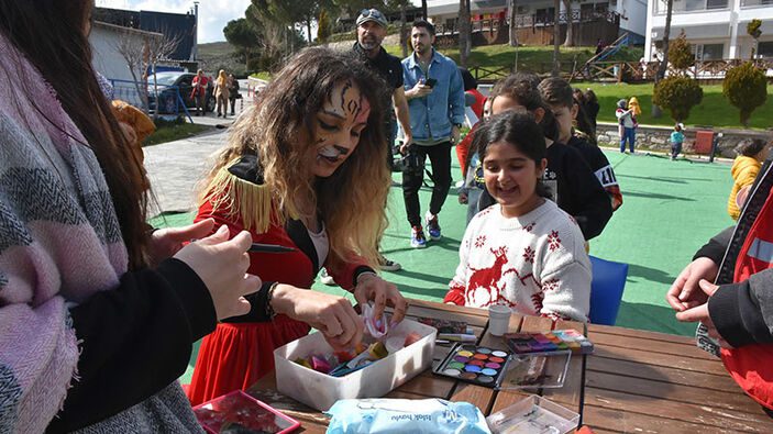 Kahramanmaraş merkezli gerçekleşen ve 11 ili etkileyen depremin 13,5 milyon insan üzerinde ağır etkileri oldu. Depremden çocuklar da olumsuz etkilendi. İzmir’in Urla ilçesindeki TCDD Sosyal Tesisleri’nde kalan depremzede çocukların hayata uyum sağlaması için gönüllüler tarafından etkinlik düzenlendi. Etkinlikte çocuklar palyaço, balon ve yüz boyama etkinliği yapıldı. Ayrıca çocuklar, çuval ve halat çekme yarışı yaptı. Hatay’dan İzmir’e gelen 9 yaşındaki Yaprak Köseoğlu “Hatay’dan geldim. Burada yüz boyaması yaptırdım. Tavşan çizdiler yüzüme. Çok güzel vakit geçiriyorum.” dedi.